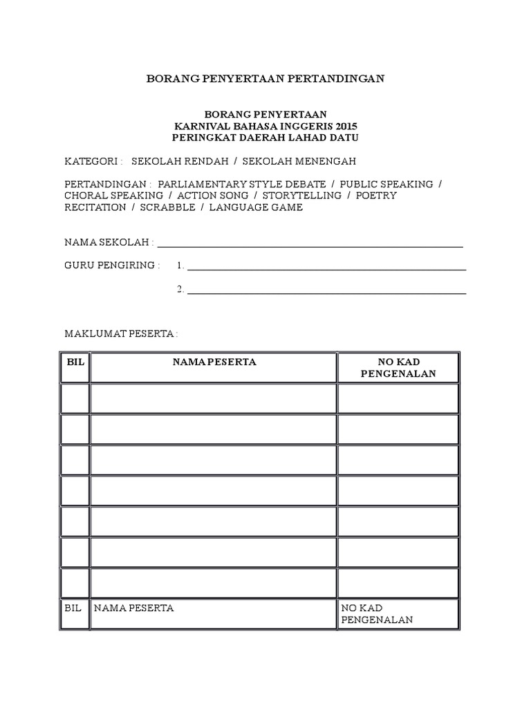 Check spelling or type a new query. We did not find results for: Maybe you would like to learn more about one of these? Contoh surat jemputan pertandingan poetry recitation.